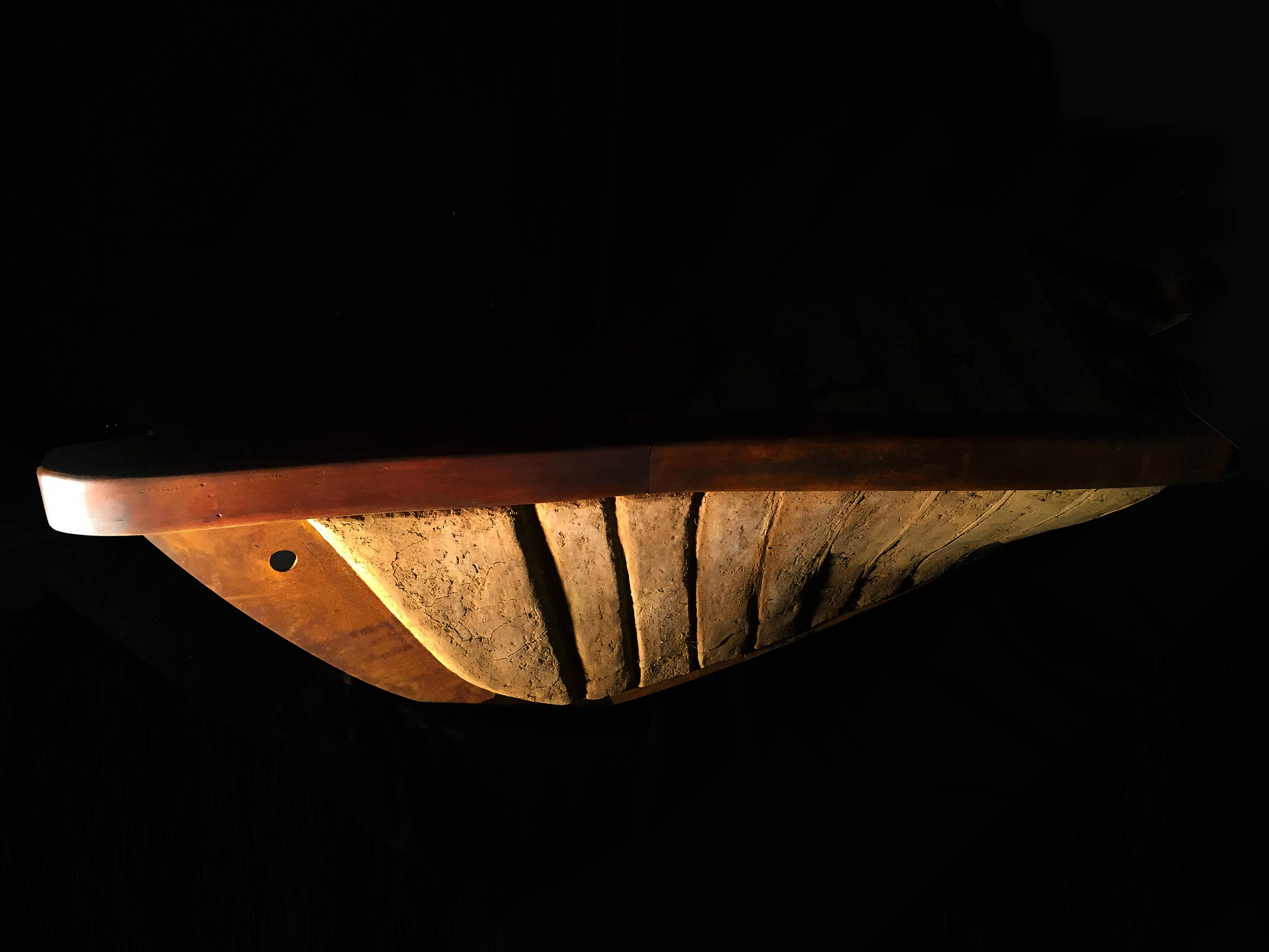 1.40 m es el largo de la proa de las imágenes, de fierro, madera y tierra anegada o cob de agave: una mezcla de arcilla cruda con los subproductos de la destilación del agave (el bagazo y las vinazas).